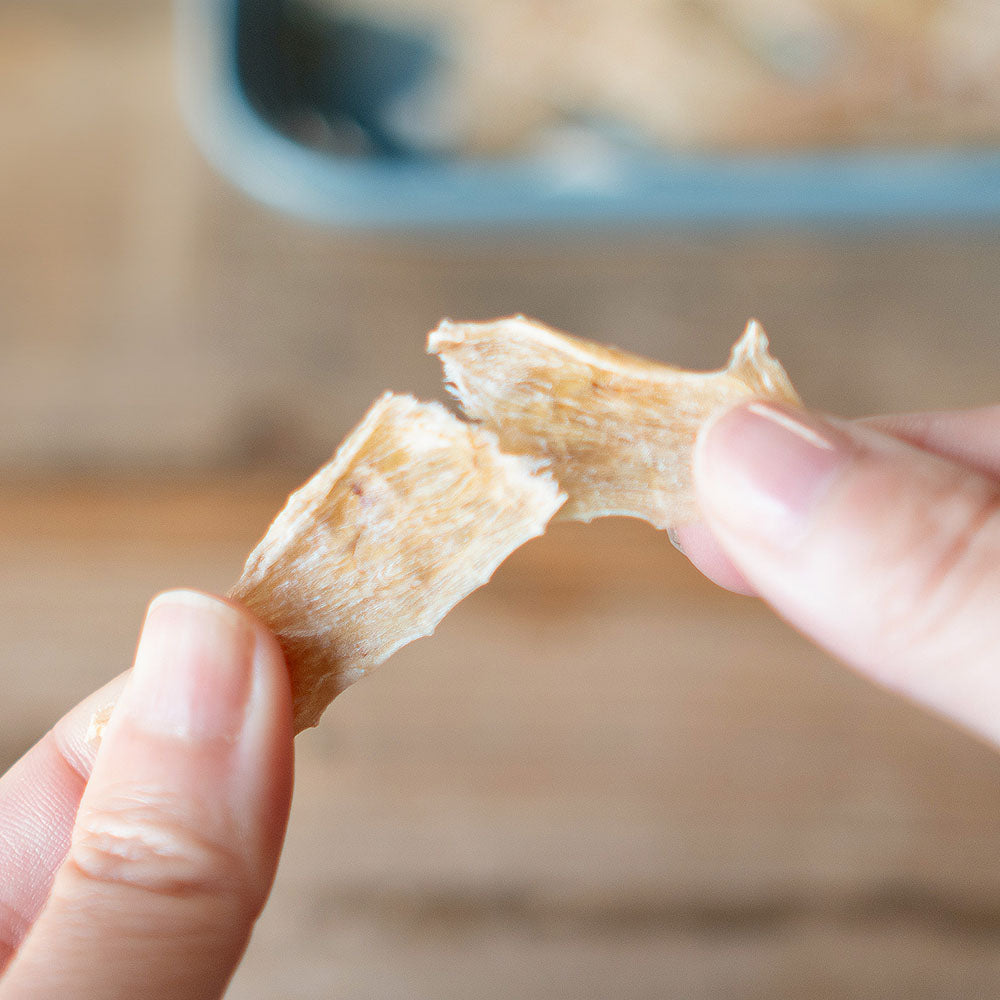 这款肉干采用新鲜切片白鲭鱼河豚制成,经过时间慢慢干燥。