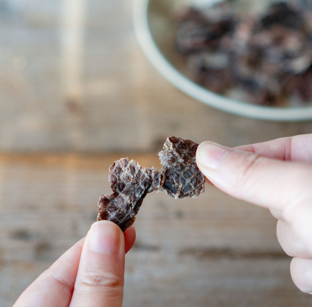 这款纯手工制作、无添加的肉干,采用100%日本野猪养殖的肉制成。肉干经过精心修剪,去除多余的肌肉和皮,并经过长时间的缓慢干燥,方便幼犬到老年犬等所有狗狗食用。享受天然肉的浓郁风味,这只有通过简单的制作才能实现。
