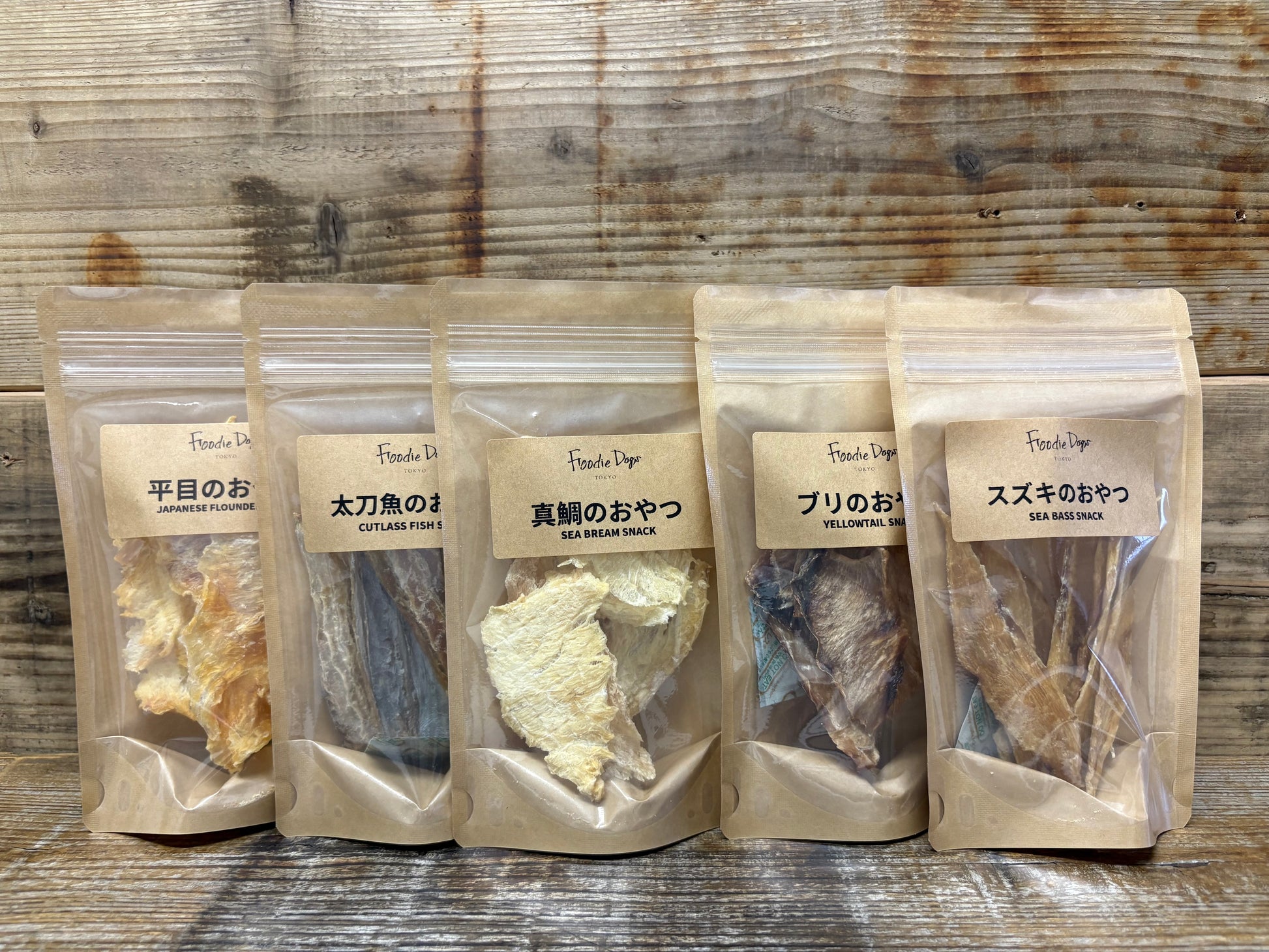 繊細で味わい深い、瀬戸内の海の幸をじっくりドライ加工した無添加ジャーキー&チップス。ワンちゃんだけでなく、ネコちゃんにもお召し上がりいただけます。 お魚シリーズの中で今の時期にしか水揚げされない季節の旬魚である平目と太刀魚の2種に加え、定番の人気魚種である真鯛、ブリ。スズキの3種を加えた5種(20g×5個)をセットにした商品です。