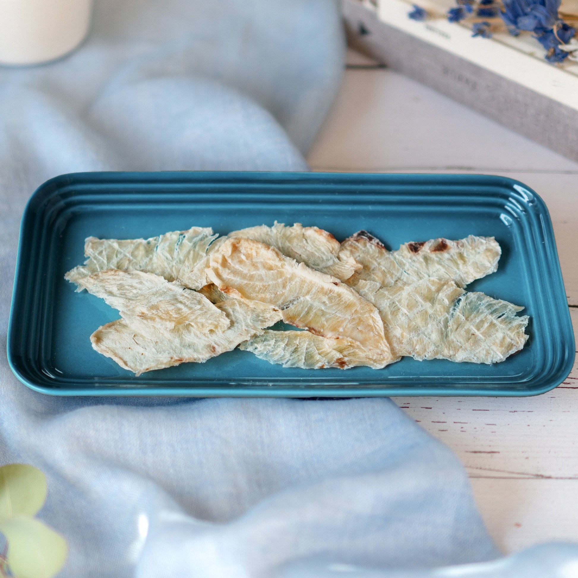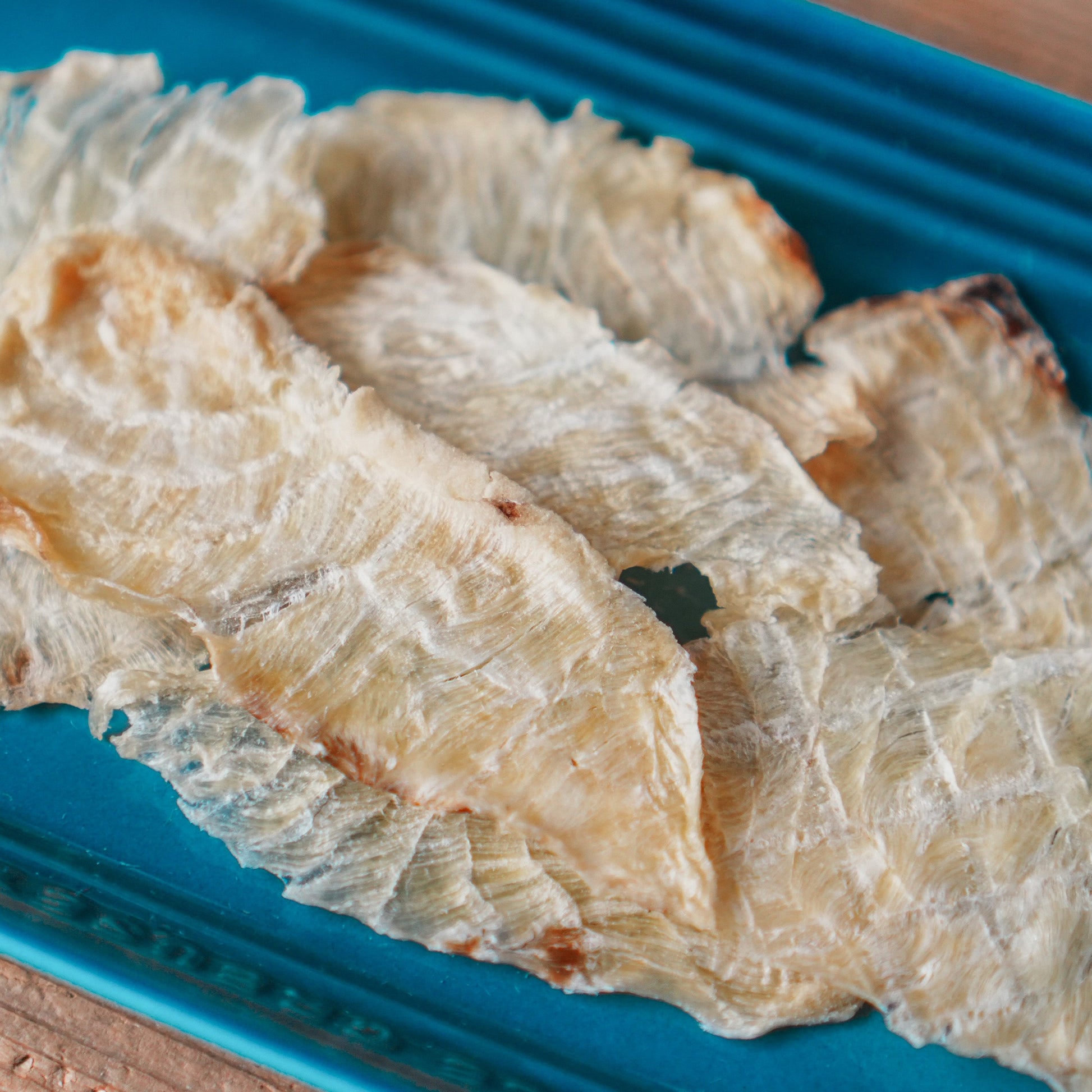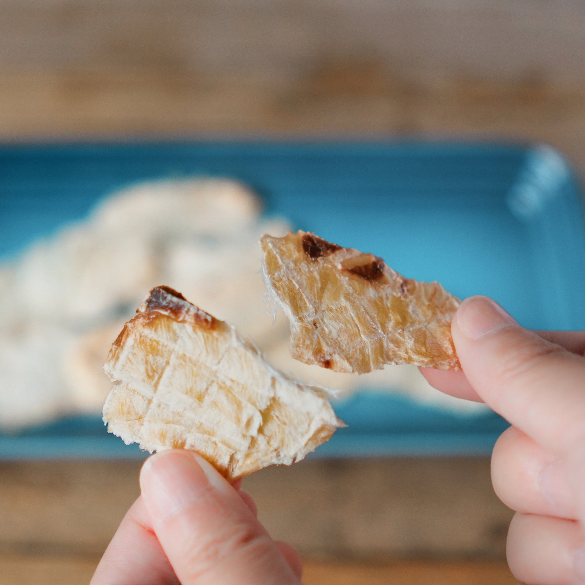 我们将新鲜的天然红鲷鱼切割后,采用特殊的制造方法将其打薄,然后经过长时间的干燥加工。它的质地比肉干更轻、更脆,适合小型犬食用。